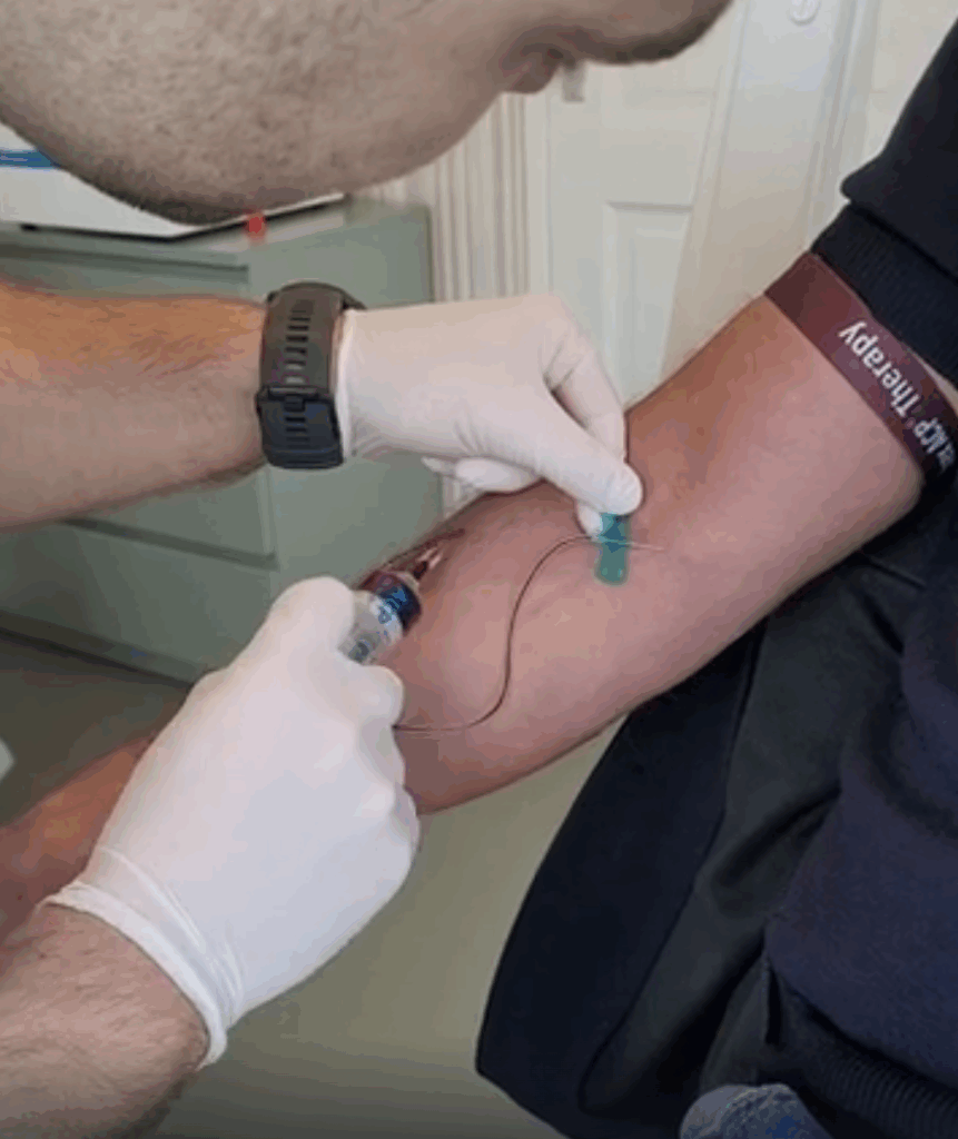 Er wordt een kleine hoeveelheid bloed bij je afgenomen via een ader in de arm. Dit gaat in een steriele buis en vervolgens in een centrifuge. Na enkele minuten is het Platelet Rich Plasma gescheiden en direct klaar voor gebruik.